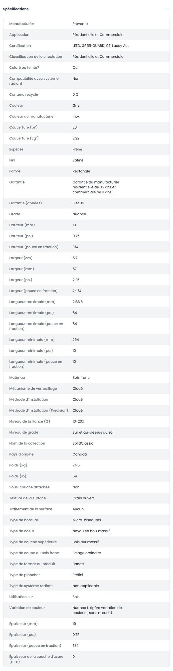 Preverco Bois franc SolidClassic Frêne Nuance Inox Satiné 2-1/4" - 3/4"