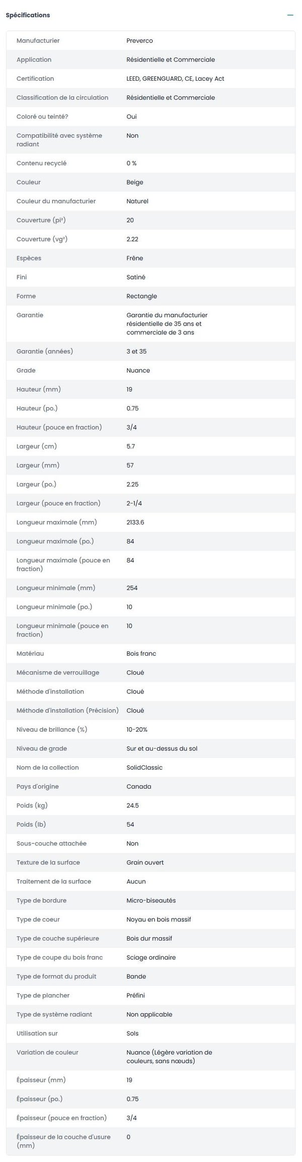 Preverco Bois franc SolidClassic Frêne Nuance Naturel Satiné 2-1/4" - 3/4"