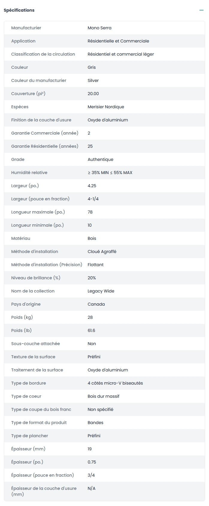 Voici du Bois franc de la collection Legacy Wide avec la couleur Silver manufacturé par Mono Serra.
